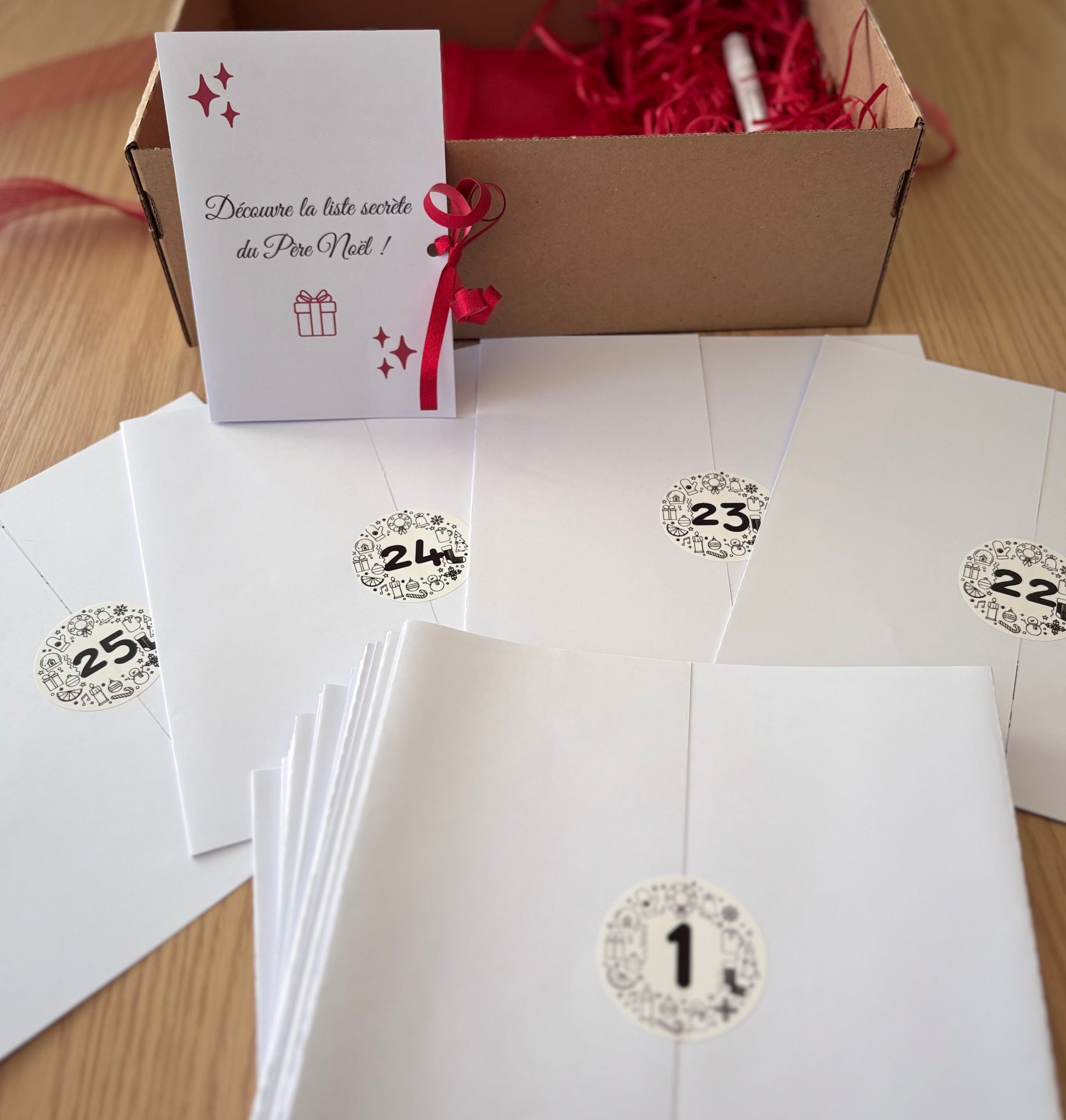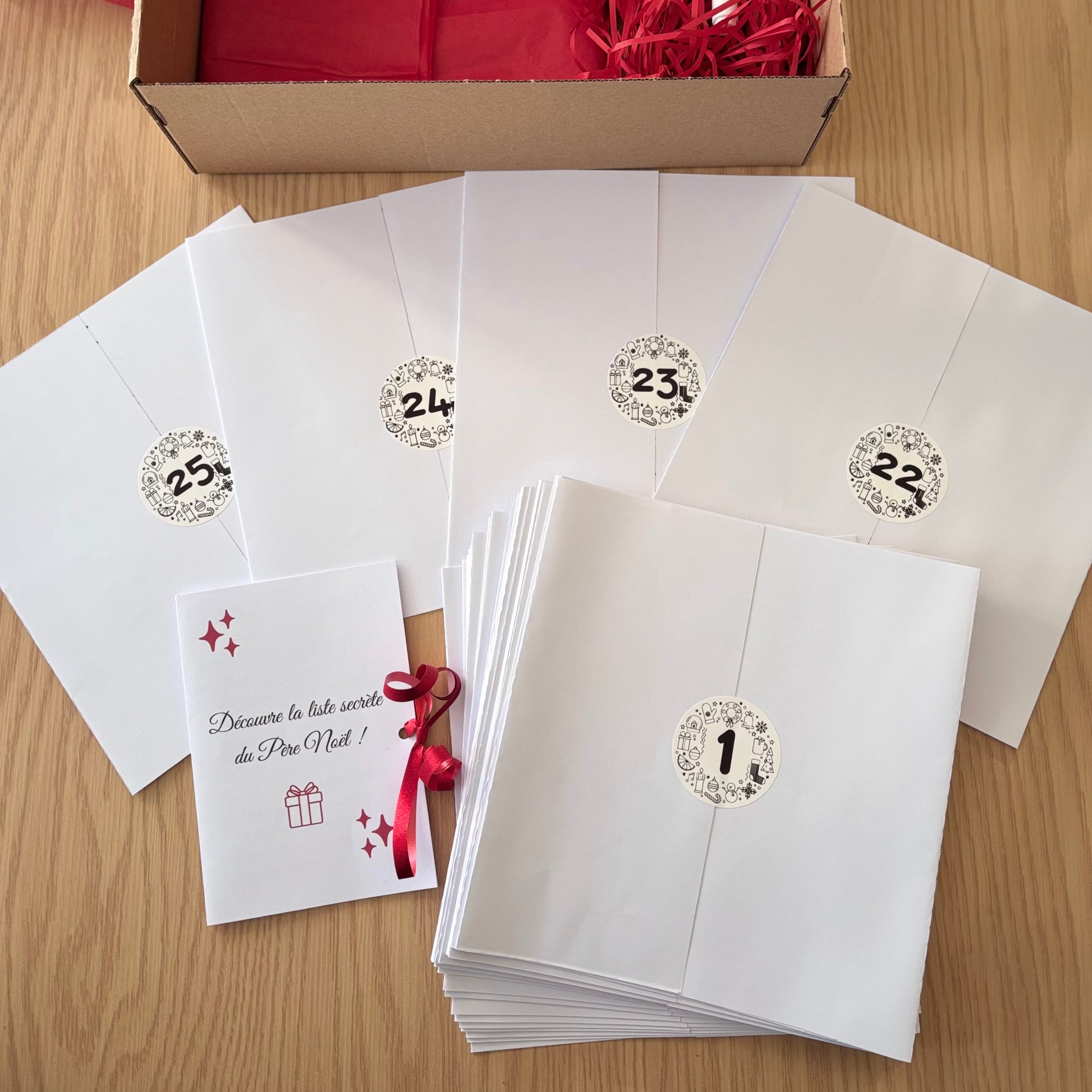 - Rabats fermés par stickers numérotés, pour garder la surprise jusqu’au bout